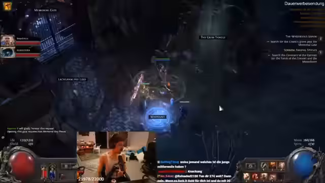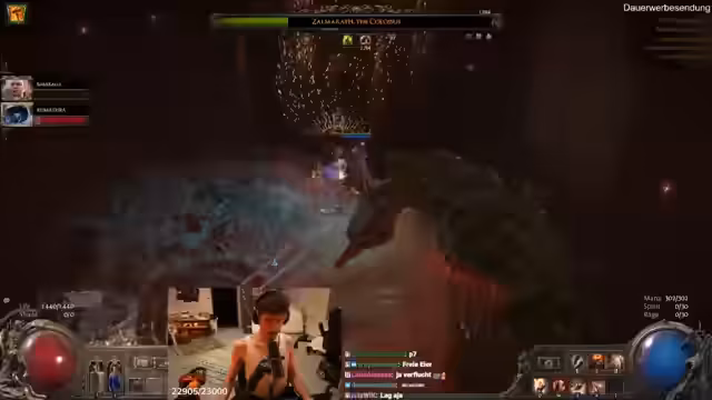 12:25:31Der Kampf gegen den Endboss in Akt 2 erfordert präzise Teamkommunikation und Kenntnis der Boss-Mechaniken. Der Boss teleforte und verursacht massive Area-of-Effect-Schaden, was zu einem schnellen Todesfall führt. Die Gruppe erkennt, dass ihre Skills wie 'Triggered Spells' und 'Meta-Gems' zwar mächtig sind, aber gegen spezifische Boss-Immunitäten an ihre Grenzen stoßen. Der Kampf verdeutlicht die Notwendigkeit von besseren Items und resistenzen, um mechanischen Herausforderungen wie dem 'Nack-Auf-Angriff', der alle Lebenspunkte auf einmal entfernt, standhalten zu können.