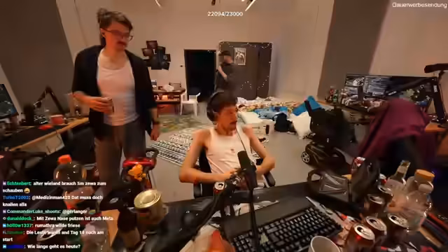 13:22:36Der Streamer betont sein extremes Commitment während der LAN, indem er erwähnt, dass er in vier Tagen über sechs Liter des Energy-Getränks 'Action' konsumiert hat. Diese Tatsache in Kombination mit dem fast ununterbrochenen Streamen über drei Tage lässt ihn einen Zustand des mentalen und körperlichen Ausgebruchtseins beschreiben, den er als 'Autopilot' bezeichnet. Trotz der Erschöpfung fühlt er sich wohl in der Gemeinschaft des Streams und stellt den humorvollen Vergleich zu den Minderjährigen aus Gelsenkirchen an, was seine leichte, aber entkrampfte Stimmung unterstreicht.