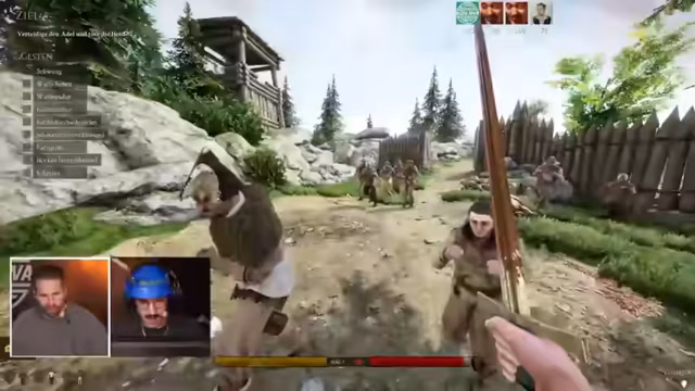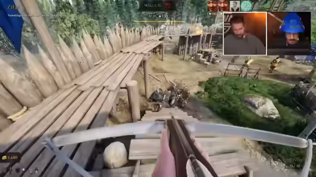 01:43:38Nach den anfänglichen Schwierigkeiten in 'Are We There Yet?' und der Erkenntnis, dass ein Spieler einen eigenen Server aufgesetzt hat, wechselt die Gruppe zu 'Mordhau'. Es wird diskutiert, wie man dem Server beitritt und welche Einstellungen vorgenommen werden müssen, um gemeinsam zu spielen. Die Spieler haben Probleme, sich gegenseitig zu hören und die richtigen Einstellungen zu finden, um dem Spiel beizutreten. Es wird ein Passwort benötigt, das in einer WhatsApp-Gruppe geteilt wird. Die erste Runde in 'Mordhau' beginnt chaotisch, da die Spieler noch nicht wissen, wie die Mechaniken funktionieren und wie man richtig spielt. Ein Spieler wird von Goblins angegriffen, während andere versuchen, in das Spiel zu kommen. Es wird beschlossen, sich erst einmal warmzuspielen und dann die Runde zurückzusetzen, um eine ernsthafte Strategie zu entwickeln. Die Spieler versuchen, Waffen zu kaufen und ihre Fähigkeiten zu skillen, während sie gleichzeitig gegen die Gegner kämpfen und versuchen, sich gegenseitig zu helfen.