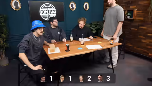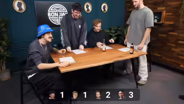 05:56:00Ein Wettbewerb, bei dem die Teilnehmer Geldstücke über einen Tisch rollen müssen, ohne dass diese herunterfallen, wird eingeführt. Jeder Teilnehmer darf drei Geldstücke rollen, und derjenige, dessen Geldstück am weitesten rollt, gewinnt. Die Regeln werden kurz erklärt, wobei betont wird, dass die Geldstücke rollen und nicht nur geschoben werden dürfen. Die Teilnehmer, darunter Niklas, Matteo und Max, versuchen sich an der Aufgabe, wobei anfängliche Schwierigkeiten und humorvolle Kommentare über die Ausführung der Würfe den Wettbewerb begleiten. Die Spannung steigt, als die Teilnehmer versuchen, ihre Technik zu perfektionieren und die Münzen möglichst weit rollen zu lassen, während sie sich gegenseitig anfeuern und necken. Trotz einiger Misserfolge und Diskussionen über die Gültigkeit der Würfe bleibt die Stimmung ausgelassen und kompetitiv.