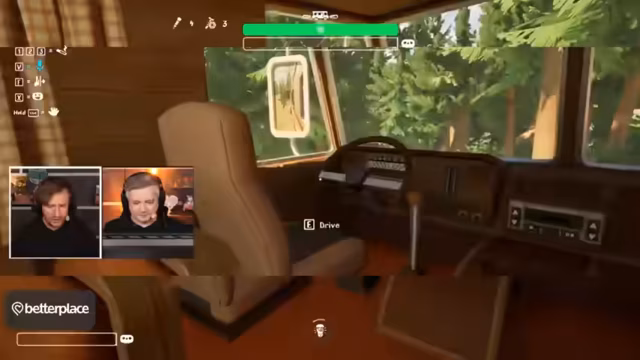 01:39:36Die Gruppe startet in 'Are We There Yet?' und es kommt schnell zu chaotischen Szenen. Maxim, der sich selbst als den 'besten Fahrer im Spiel' bezeichnet, versucht das Fahrzeug zu steuern, während andere Schwierigkeiten haben, überhaupt einzusteigen. Es wird diskutiert, wer fahren soll und ob man schalten muss. Technische Probleme und die Unübersichtlichkeit des Spiels führen zu Verwirrung, insbesondere als einer der Spieler nichts sehen kann. Die Kommunikation ist schwierig, und es kommt zu Missverständnissen bezüglich der Steuerung und des Ziels. Ein Spieler bemerkt, dass er 'stuck' ist, und es wird humorvoll angemerkt, dass dies daran liegt, dass er 'nur Kacke macht'. Die Gruppe versucht, den Wohnwagen richtig zu positionieren und fragt sich, ob es Team-Damage gibt. Die chaotische Fahrt geht weiter, während die Spieler versuchen, sich an die Steuerung zu gewöhnen und die Umgebung zu erkunden. Es wird ein Campingplatz entdeckt, aber die Gruppe entscheidet sich dagegen, da ein Bär erwartet wird, der 'one-shottet'.
