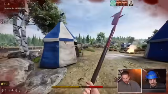01:50:16Die Gruppe kämpft sich durch die ersten Runden in 'Mordhau' und versucht, eine Strategie zu entwickeln. Es wird diskutiert, wie man Gegner dodged, Waffen wechselt und welche Skills am besten sind. Ein Spieler entdeckt, dass ein Speer viel Spaß macht und dass man sich mit Kills heilen kann. Die Kommunikation ist weiterhin chaotisch, da die Spieler versuchen, sich gegenseitig Anweisungen zu geben und gleichzeitig zu kämpfen. Es wird über Friendly Fire gesprochen und ob es automatisch einhändige oder zweihändige Waffen gibt. Die Gruppe beschließt, die Runde neu zu starten, um eine bessere Strategie zu entwickeln und die Skillpunkte sinnvoll zu verteilen. Es wird vorgeschlagen, dass ein Spieler auf Fernkampf geht und ein anderer auf Tank. Die Spieler versuchen, sich gegenseitig zu unterstützen und die Gegner zu besiegen, während sie gleichzeitig die Spielmechaniken lernen und sich an das chaotische Gameplay gewöhnen. Es wird auch über die Möglichkeit gesprochen, Waffen zu verkaufen, um bessere Ausrüstung zu kaufen.