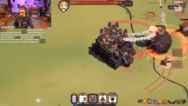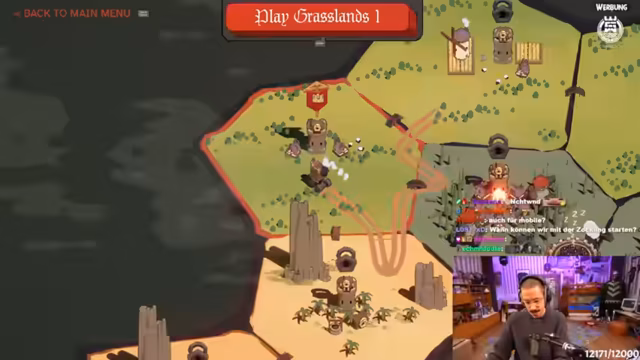 01:45:06Der Streamer geht auf die verschiedenen Spielsysteme ein. Es gibt unterschiedliche Captains mit Effekten, Crew-Mitglieder wie Archer oder Händler, und Module wie Kanonen oder Minenleger. Die Upgrades werden farblich kodiert, wobei rot für Fähigkeiten und blau für automatische Angriffe steht. Während des Spieltests sammelt der Streamer Artefakte, die einem permanenten Bonus verleihen, und steuert seine Burg mit einem Lenkrad, um Feinde zu bekämpfen und überleben zu können.