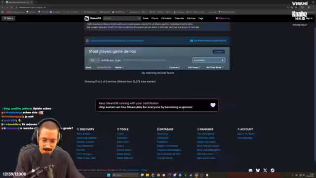 03:28:09Nachdem der Streamer den Boss besiegt hat, folgt eine Diskussion über die Demo eines Spiels namens 'Wanderburg'. Es gibt Streit im Chat über den Launchtermin, der schließlich für Februar festgelegt wird. Der Streamer bewirbt die Demo aktiv, bittet die Zuschauer, sie auf der Wishlist hinzuzufügen und zu bewerten, um den Steam-Algorithmus zu unterstützen und den Entwicklern Feedback zu geben. Es wird über den Steam Next Fest und die Notwendigkeit von Rezensionen für die Demo gesprochen, welche bereits eine positive Bewertung von 97% aufweist.