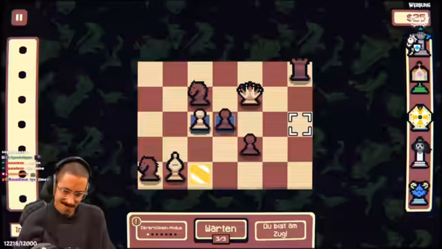 05:05:27Der Stream wechselt zu einem Spiel namens 'Gambonanza', ein Schach-Roguelite, das ein Update mit neuen Gambits, Bossen und Spielmechaniken erhalten hat. Es werden neue Regeln wie die Bewegung von Bauern wie Springer und die Umwandlung in Springer nach dem Schlagen erklärt. Der Streamer erkundet verschiedene Taktiken, darunter das Platzieren von Damen, um benachbarte Figuren zu segnen, und versucht, eine Runde so schnell wie möglich abzuschließen, um eine hohe Punktzahl zu erzielen.