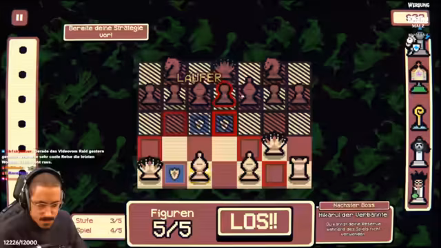 05:09:24Das Spiel konzentriert sich auf die Nutzung von 'Gambits', die die Spielmechaniken verändern. Der Streamer analysiert die Gambits wie die Segnung von benachbarten Figuren und die Umwandlung von Bauern in Springer. Er sammelt Gold und trifft strategische Entscheidungen, welche Figuren er auf dem Brett platziert und welche er als Respar behält. Es kommt zu knappen Situationen, in denen er umständlich um Figuren kämpfen muss, um Goldene Figuren zu erhalten und den Endboss Mechagnus Carlsen zu besiegen.