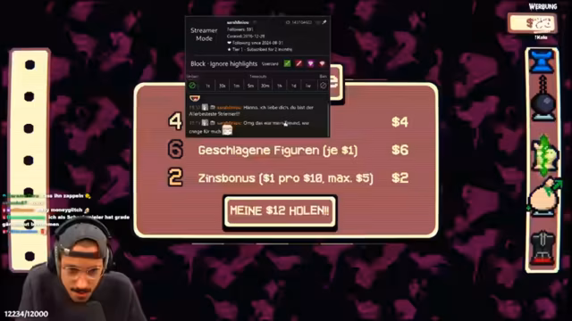01:52:24Während des Streams gibt es wiederholte technische und gameplay-bezogene Probleme. Der Streamer stellt fest, dass ein 'Re-Roll'-Button für Upgrades fehlt, was er als essenziell für das Spiel empfindet. Er kommuniziert live via Discord mit den Entwicklern (Melvin, Friedrich, Lutrinus), um Feedback und Bugs zu melden. Er kritisiert die oft unklare Darstellung von Fähigkeiten und Cooldowns sowie das Fehlen einer Demo für die Öffentlichkeit und arbeitet während des Streams aktiv an der Verbesserung des Spiels.
