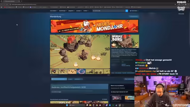 01:41:38Nach anfänglichen technischen Schwierigkeiten präsentiert der Streamer das Spiel 'Wanderburg', ein Indie-Game im Next Fest. Er beschreibt die Kernmechanik: Man steuert eine fahrende Burg, die Ressourcen auf der Map aufsaugt, automatisch auf Feinde feuert und durch Upgrades wächst. Das Spiel wird als 'Vampire Survivors Light' mit mittelalterlichem Szenario bezeichnet, was ihn sehr begeistert. Es wird eine Verlosung von 100 Steam Keys bis zum 2. März angekündigt.