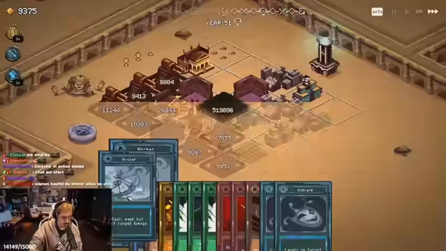 04:17:56Im späteren Spielverlauf stellt der Streamer fest, dass die Ratten zu viel Schaden verursachen und daher beseitigt werden müssen. Er optimiert den Turm mit Beacon und anderen Verzauberungen, um die Angriffsgeschwindigkeit zu maximieren. Er erklärt die Funktion von 'Quarry', das jedem Turm mehr Schaden gibt, und zeigt, wie er mit 'Overhaul' gezielt Felder zerstört, um andere zu leveln. Trotz der komplexen Strategie und der beeindruckenden Zahlen, stößt der Streamer auf technische Probleme und Gameplay-Herausforderungen, die das Weitermachen schwierig machen.
