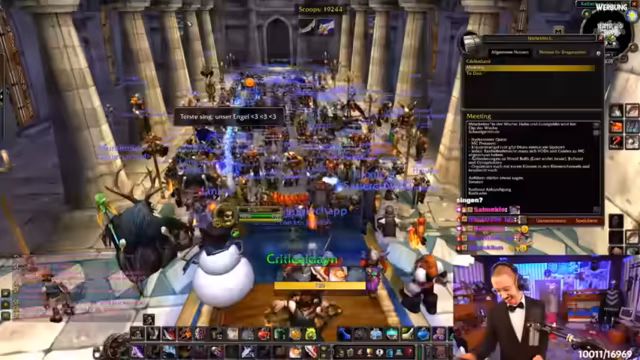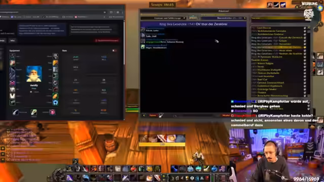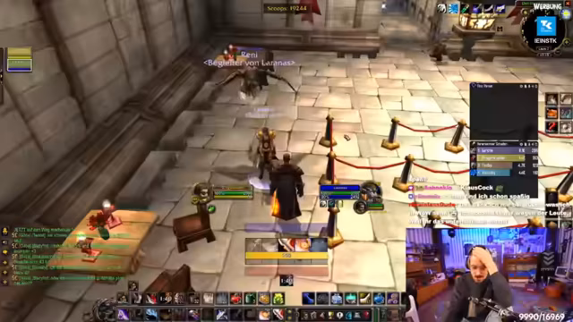 03:24:03Der Streamer erkundigt sich nach den Teilnahmebedingungen für einen bevorstehenden Raid, ob man an einem Meeting anwesend sein muss, um in den Raid-Kader aufgenommen zu werden. Er ist entschlossen, den 'Fullrun' in Blackrock Depths zu absolvieren, um eine wichtige Quest für den Zugang zum Molten Core zu erledigen. Nach längerer Diskussion beschließt die Gruppe, einen riskanten Plan zu verfolgen, bei dem der Streamer in die bereits bestehende Leere-ID der anderen Gruppe eintritt. Es geht darum, eine spezielle Quest abzuschließen und den 'Gedenkpad' zu besorgen, wobei das Risiko eines Respawn der Gegner im Raum diskutiert wird.