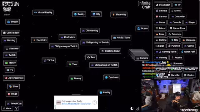 03:37:49Ein Zuschauer im Chat gibt den entscheidenden Tipp, wie man einen 'Livestream' im Spiel erstellt: Durch Kombination von 'Periskop' und 'Internet'. Die Streamer müssen erst herausfinden, wie man 'Periskop' durch 'Submarine' und 'Smoke' herstellt. Dies erfordert mehrere Versuche und falsche Kombinationen.