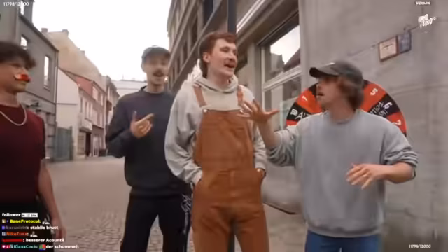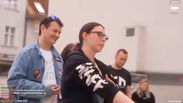 05:13:31Nach der Gaming-Challenge wechseln die Teilnehmer zum Marktplatz, um mit dem Publikum zu interagieren. Sie bewerben Knabe-Cola und laden die Menschen zum Mitmachen ein. Es wird über Berlin und Sehenswürdigkeiten gesprochen, wobei der Streamer seine eigene Vorliebe für die Zitadelle erwähnt. Die Teilnehmer machen eine kleine Stadtführung und unterhalten sich mit den Passanten über verschiedene Themen, darunter Fußball und lokale Besonderheiten.