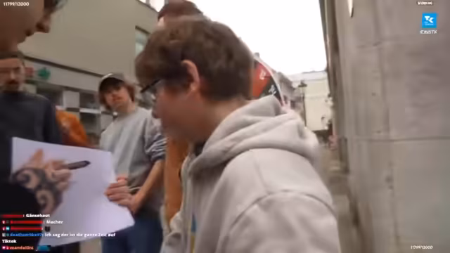 00:00:00Der Stream beginnt mit technischen Problemen und unerwarteter Werbung. Die Streamer stellen die Challenges vor: Sie müssen Geoguesser mit 60 Sekunden Zeit pro Runde meistern und parallel Fotos von fünf deutschen Sehenswürdigkeiten mit Knabe-Cola sammeln lassen. Zusätzlich sind weitere Aufgaben wie Mario Kart Double Dash, Tekken 7-Spiele gegen lokale Spieler, Trickshot-Simulator, Schach gegen Zuschauer, ein Quiz und Rockband geplant. Die Teams müssen mehrere Stationen in der Stadt bewältigen.