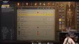 01:59:10Der Streamer widmet sich verschiedenen Spielmechaniken. Er schleift seine Waffe am Schleifstein und entdeckt und nutzt den Alchemie-Tisch. Er wechselt seine Kleidung, um seinen Charisma-Wert für Gespräche zu erhöhen, und verkauft gesammelte Kräuter und Beutegut bei einem Händler, um Gold zu verdienen. Anschließend plant er, seine Hauptquests fortzusetzen, indem er den Schmied aufsucht, um Zugang zur Hochzeitsfeier zu erhalten, und sucht nach seinem verlorenen Hund.