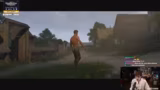 03:23:32Während des nächtlichen Marsches stößt der Streamer auf ein Würfelspiel, bei dem er gegen einen NPC um zehn Groschen wettet und eine grobe Vorstellung vom Spielmechanismus erhält. Kurz darauf, in der dunklen Nacht, findet er ein Lager in einer Hütte, das jedoch von einer Person blockiert wird. Er wird in eine Szene mit besoffenen NPC verwickelt und flieht schließlich, um in einem improvisierten Lager im Wald zu übernachten.