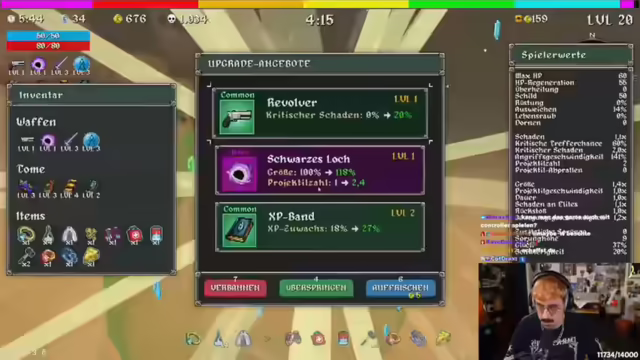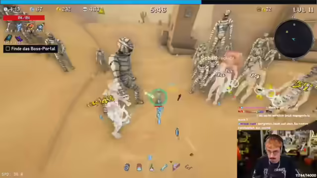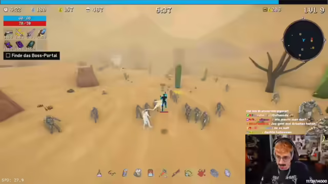 04:15:28Nachdem der Streamer im Wald Schwierigkeiten hatte, beschließt er, Wüste 3 freizuschalten, um etwas Neues auszuprobieren. Er wählt den Ninja-Charakter, der Nachtelfenrolle in der Luft macht. Der Streamer möchte Blitzer auf 15 kriegen und wählt Bewegungsgeschmack. Er versucht, einen Gegner zu töten, um eine lila Mikrowelle zu bekommen, und holt sich dann einen Magneten. Er entscheidet sich gegen ultra krankes Scaling und wählt Schwierigkeiten nur ein bisschen. Der Skorpion wird als Tod angesehen, und der Streamer braucht eine Waffe und eine gute Aura. Er erwähnt, dass in der Wüste vier Waffen wichtig sind, 14 wären auch gut. Er verzichtet möglicherweise auf einen doppelten Boss, da der Skorpion gefährlich sein kann. Es wird ein Boss-Portal und eine blaue Mikrowelle gefunden. Der Streamer nimmt fünf Prozent mehr Bewegungsgeschwindigkeit und zwei fette Vasen. Er hätte gerne mehr Waffen, aber das Spiel ist zu schmackhaft zu ihm. Er wählt Attack Speed und überlegt, ob EP das Einzige ist, was er Scaling-wise mitnehmen soll. Er findet Ninja ganz geil und skaliert auf Ausweichen. Der Streamer nimmt eine Kreditkarte und das Glücksband. Es wird überlegt, auf Projektile zu gehen und den Mengenband zu nehmen. Der Steintyp wird als einfach angesehen, und der Streamer findet zwei Goldtruhen. Ab jetzt gibt es zwei Bosse. Der Streamer findet die Wüste geil und nimmt Attack Speed. Es wird überlegt, sich hitten zu lassen, um mehr zu bekommen. Mengenband wird als entscheidend angesehen, und der Streamer wählt das Ausweichband. Er findet die Laufanimation geil und geht in die Innenbahn. Der Streamer aktiviert Schaden und nimmt Abprallen und Schaden. Er findet Ninja geil und nimmt Healing. Der Streamer hat 24 Ausweichen und braucht Mengenband.
