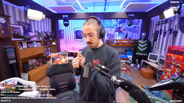 00:16:41Aufgrund seiner wiederkehrenden gesundheitlichen Probleme legt der Streamer nun seinen Fokus stark auf die Stärkung des Immunsystems. Er konkretisiert seine Maßnahmen: Er führt Blutbilder durch, erhält Infusionen und tauscht sich mit Nance aus. Um seinen Haarausfall zu kompensieren, wird das Tragen einer Perücke als Notlösung für den Alltag in Betracht gezogen, wobei er derzeit jedoch den Fokus auf die medizinische Behandlung legt.