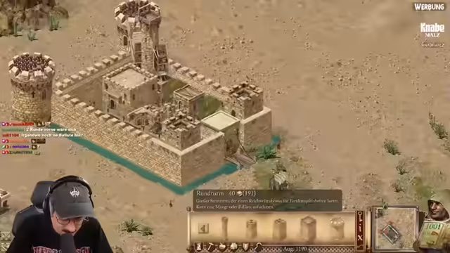 03:07:31Das Stream-Video beginnt mit der Konzeption einer neuen Burg in Stronghold, wobei die Anfangsphase als entscheidend für den späteren Erfolg gilt. Es werden die Vor- und Nachteile von quadratischen und runden Türmen diskutiert und das Bedürfnis nach einer kleineren, kompakten Burg mit optimierten Produktivitäts-Wegen für das frühe Spiel deutlich gemacht. Der Fokus liegt dabei auf einer effizienten Verteidigung und einem einzigartigen, persönlichen Burgstil.