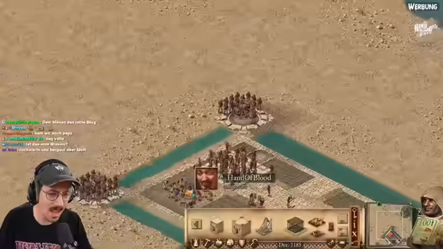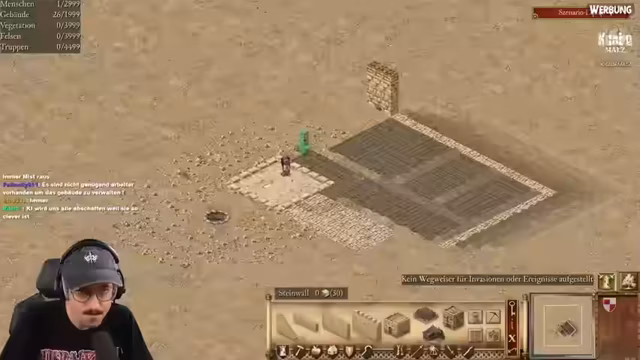 01:25:03Aufgrund eines technischen Problems, das das Löschen des aktuellen VODs erfordert, muss der Streamer kurz unterbrochen werden. In der Pause während des Neustarts kommt es zu einer Diskussion über einen kontroversen Schnittpunkt aus einer Dokumentation über LAN-Partys, in dem ein Teilnehmer sich entblößt hat. Danach wendet sich der Fokus ganz dem Spiel Stronghold Crusader Definitive Edition zu. Der Streamer kündigt an, eine eigene Burg zu erstellen und gibt einen Einblick in die verfügbaren Funktionen des Karteneditors, um individuelle Szenarien zu gestalten.