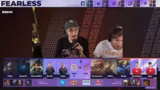 05:54:01Nach der ersten Niederlage bereiten sich die Teams auf das nächste Match vor. Eintracht muss nun bei Fearless-Draft 20 Champions von der möglichen Auswahl streichen. Bröki, der zum Abschluss wahrscheinlich einen Utility-ADC wie Varus oder Master Yi wählen könnte, hat die Chance, in seinem letzten Profispiel einen Kill zu erzielen. Streamer und Community feiern ihn als eine Legende, die einen unvergesslichen Auftritt haben möchte.