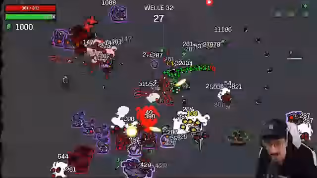 03:07:57Die Strategie verschiebt sich vollends auf die Maximierung der Lebenspunkte (Max Life). Mit fast 400 Leben wird das Spiel zu einem 'Safari', in der der Streamer mühelos Gegner wie Dementoren eliminiert. Der Schaden ist derart immens, dass selbst Konzepte wie HP-Regeneration an ihre Grenzen stoßen. Das Erlangen von 3 Max HP pro 80 Materialien wird zur nächsten Priorität, um das endlose Überleben zu sichern.