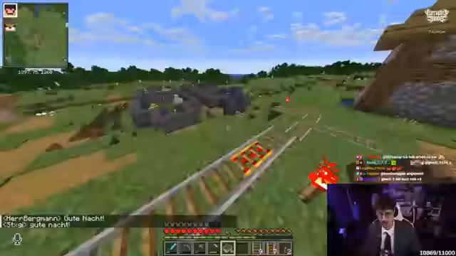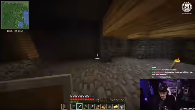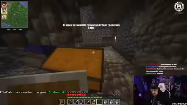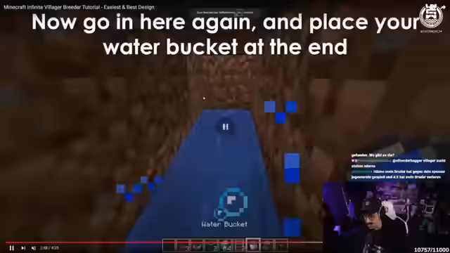 03:16:04Das Hauptproblem ist der Transport von Villagern aus einem Dorf in die eigene Mine. Nachdem die Chat-Vorschläge gescheitert sind, wendet sich der Streamer an den Kollegen Kroko, der sich im Voice-Chat befindet. Die Kommunikation gestaltet sich schwierig, wird aber letztendlich erfolgreich. Kroko klärt den Streamer auf und hilft ihm, einen Villager per Boot in seine Mine zu transportieren und die Situation zu lösen.