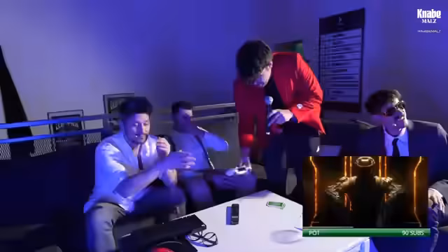 06:53:53Das Black Ops 3-Duell erreicht seinen Höhepunkt und endet mit einem knappen Sieg für einen Teilnehmer. Die Verlierer, Kalle und der Streamer, müssen den Pott teilen. Sie kommentieren das seltsame digitale Finale und die hohen Kosten für ein sieben Jahre altes Spiel. Danach geht es in Runde 3 der Pokerpartie über, bei der die Blinds angepasst werden und neue Hinweise folgen.