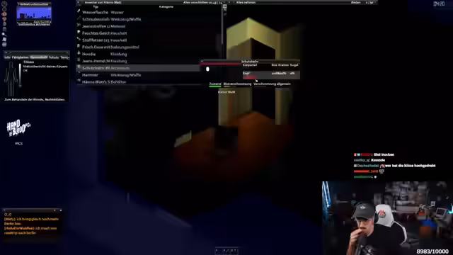 08:01:41Bei der Suche nach Ressourcen trifft der Streamer auf andere Spieler wie Turi. Sie tauschen Gegenstände aus, wie Fachmagazine und Nahrungsmittel, und tauschen sich über ihre Basisausstattung und Strategien aus. Die Interaktion zeigt den kooperativen Aspekt des Spiels, auch wenn es auch zu unbeabsichtigten Konfrontationen kommt.