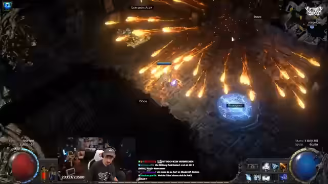 03:02:44Der Streamer findet das Geilste an Path of Exile 2, dass er einen Durchblick hat. In Path of Exile 1 hatte er hunderte Stunden und blickte überhaupt nicht durch. Alle drei Monate kommt eine neue League raus und alles ist anders. Er fragt, ob er mit Level 64 die dritte Ascendancy schafft. Er hat sehr viel Energy Shield. Er glaubt, dass Sanctum sinnvoller ist, wenn man das mit Level 70 oder so macht. Er fragt, ob er ein Quest-Item bekommt. Er ist bei Sektor und fragt, ob der checkt, dass er dadurch Ascendancy bekommt. Er kann rechts einfach auf Teleport to Tempor of Chaos klicken. Das ist neu. An dem Inscribed-Ultimatum steht es dann immer dran. Er hat ein Ultimatum im Inventar mit Area Level 59. Er macht erstmal Act 3 durch. Jin muss 60 und Ultimatum muss 75 sein fürs dritte Set an Punkten. Er ist gerade im normalen Act 3 durch und hat alles falsch gemacht. Er ist aus Versehen in dieses goldene Portal gelaufen. Wenn er jetzt ein Portal macht, kommt er bei Akt 3 raus, aber da ist kein Wegpunkt. Er hat einen Bug gefunden.