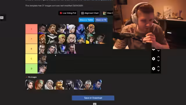 07:12:12Ein Hauptaugenmerk des Streams ist eine umfassende Tierlist aller Valorant-Agents. Der Streamer bewertet jeden Agenten von S bis D anhand seiner Stärke im allgemeinen Spiel und im Ranked-Modus. Er begründet die Platzierungen ausführlich und gibt persönliche Insights; so wird zum Beispiel Omen als stärkster Smoker bezeichnet, während Chamber im Average-Ranked als B-Tier eingestuft wird, und Killjoy wird auf das tiefste D-Tier gesetzt, was auf deren geringen Nutzen im Solo-Q hindeutet.