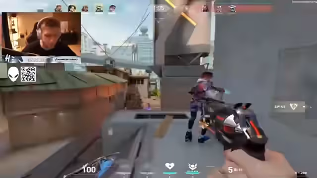 03:02:47Die Runden beginnen mit Fokus auf den Omen als Haupt-Agent. Der Streamer analysiert das Geschehen im Chat und kommentiert seine eigenen Aktionen, darunter ein verpasster Schuss durch Blendung von Phoenix und Omen. Es werden verschiedene Strategien besprochen, wie z.B. ein geplantes Flash durch den Jet auf einem bestimmten Spieler. Die Kommunikation mit den Teammates zielt darauf ab, den Spike zu platzieren oder gegnerische Linien aufzubrechen, wobei der Streamer selbst mit anderen Agenten wie Cypher und Astra experimentiert.