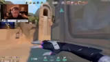 01:55:00Einem gegnerischen Spieler mit identischem Messer-Design wird Aufmerksamkeit geschenkt. Der Streamer beschreibt dessen freundliches Verhalten und überlegt, ob dies eine Taktik ist, um Vertrauen aufzubauen und den Streamer in eine Falle zu locken. In einer Runde gelingt es dem Team, durch strategische Platzierung und Koordination, wie das Setzen von Fallen und geschicktem Peeking, dem Gegner Punkte wegzunehmen und eine vorteilhafte Position zu erlangen.