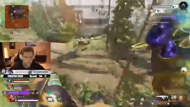 05:44:17Nach mehrmaligen Problemen mit dem Sound des Spiels Valorant, der für den Zuschauer kaum hörbar ist, wechselt der Streamer das Genre. Er startet eine Runde des Battle-Royale-Spiels Apex Legends. Dies markiert eine szenische Veränderung, bei der der Fokus von taktischem FPS-Shooting auf das Looten und Überleben in einer großen Map verlagert wird, um die technische Störung zu umgehen.