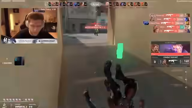 03:06:17Der Streamer erzielt einen Kill und entscheidet sich, auf der Hausseite zu bleiben. Er und sein Team erkennen, dass die Gegner eine aggressive Spielweise mit viel "Art"-Druck und Dry-Peeks auf der Hausseite verfolgen. Ein队友 wird von der Gegnerseite eliminiert, was den Streamer dazu veranlasst, einen unerwarteten Zug mit dem Jäger-Agenten zu machen. Er peaket, tappet den Gegner und erkennt, dass er sich in einer schwierigen Position befindet, da ein Feind in seiner Nähe ist. Die Dynamik des Spiels verlangt schnelle Reaktionen und Anpassungen der Taktik.