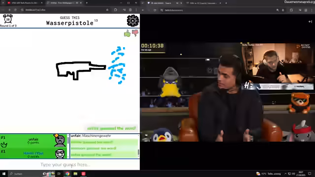 08:25:18Vorschlag für eine Runde Scribble.io während der Pause, was als guter Vorschlag gilt. Es werden Schwierigkeiten beim Einrichten des Spiels im Stream besprochen. Der Streamer möchte eine Lobby für vier oder five Personen erstellen und den Link im Chat posten. Nach anfänglichen Verwirrungen mit dem Code gelingt es, eine Lobby zu starten und das Spiel im Stream zu zeigen.