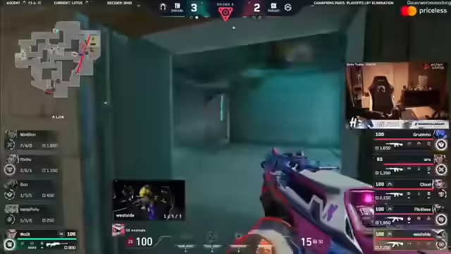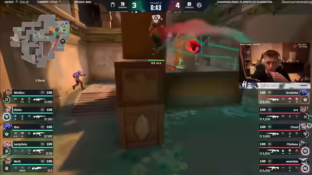09:52:31Heretics trotzen den Erwartungen, ähnlich wie sie es bei diesem Event getan haben, und sind mit dem Verlust der ersten Map vertraut, was in EMEA ein Meme ist. Trotzdem erholten sie sich gut, und Ara hat wieder seine Ult. Es kommt zu einem Ulti-Brawl, bei dem Fähigkeiten im Vordergrund stehen. Heretics nehmen eine zweite Auszeit in dieser Map, da sie die letzten beiden Runden benötigen. Die Awareness von Woot wird hervorgehoben, als er von einem Boom-Bot zurückgedrängt wird und hinter der Viperwall der Angreifer versteckt wird. Giants fahren ab, ähnlich wie es kürzlich bei Vertixen der Fall war. Das Valo-Melken wird nicht mehr so stark betrieben wie früher. Es wird über die Anzahl der Subs und den Anteil der Valo-Subs diskutiert, wobei einige Streamer mehr Glück haben als andere.