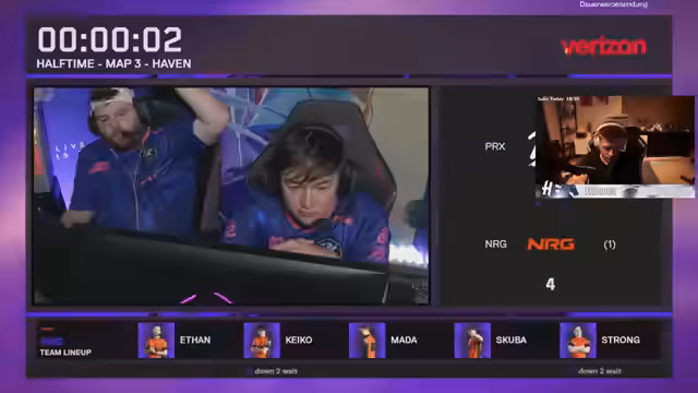 00:21:33Die zweite Map „Haven“ beginnt und es wird die Agentenselektion der Teams besprochen. Beide Teams haben eine positive Bilanz auf dieser Map. Es wird eine enge Runde analysiert, in der NRG aggressiv versucht, einen Rundengewinn zu erzwingen. Die Map verläuft ausgeglichen, und die Chancen für beide Teams werden als relativ gleich angesehen, da beide Maps knapp ausgingen. Der Streamer bewertet die taktischen Anpassungen der Coaches.