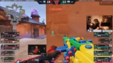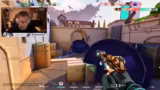 00:44:57Der Streamer interagiert stark mit dem Chat, grüsst einzelne Zuschauer und diskutiert über deren Namen. Aufgrund von auffälligen und schein unmöglichen 'Headshots' durch einen Gegner, der als Chamber spielt, werden massiv Betrugsvorwürfe laut. Der Streamer plant, sich den Replay der betreffenden Runden anzusehen, um diese Vorwürfe zu überprüfen und öffnet eine Diskussion darüber im Chat.