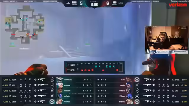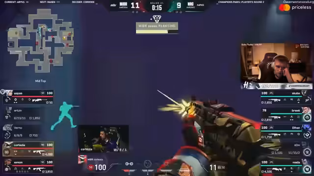 06:10:37Das Spiel ist durchgehend von sehr knappen Runden geprägt. So wird ein Schuss auf Doma als respektlos eingestuft, während eine Runde als "clean" beschrieben wird. Spieler wie Kayak werden für ihre hohen Kills und ihrer Impact im Spiel gelobt. Eine Runde muss sogar wiederholt werden, da ein vermeintlicher Bug auftritt, der den Spielverlauf beeinflusst hat.