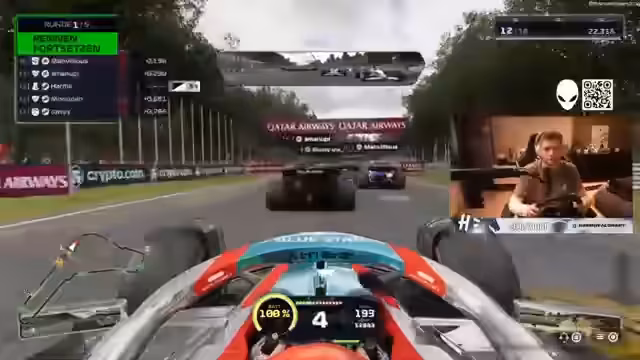 05:30:48Der Streamer wechselt zur Formel 1-Simulation und erlebt mehrere Fahrfehler. Er beschreibt, wie er in einer Kurve gegen die Mauer fährt und einen Unfall verursacht. Obwohl er nach der Kollision wieder auf die Strecke zurückkehrt, bleibt seine Performance ungenügend. Er beschreibt den Ärger über die verpassten Bremspunkte und die unkontrollierbare Fahrzeugreaktion, was zu einem frustrierenden Rennverlauf führt.