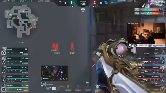 01:32:30Auf der entscheidenden dritten Map Ascent, dominiert KC in den ersten Runden durch taktisch kluges und aggressives Spiel. Der Kommentator lobt das organisierte Teamplay von KC. Für Liquid, insbesondere für den Neuling Wayne, ist dies der erste Auftritt auf dieser Bühne, und er wird sichtlich unter Druck gesetzt. Während des Spiels kommt es zu technischen Unterbrechungen und Diskussionen über den Einsatz von Ultimates und den Verlust der Economy, was das Match spannend gestaltet. KC gewinnt auch Map 3 und damit das Match.