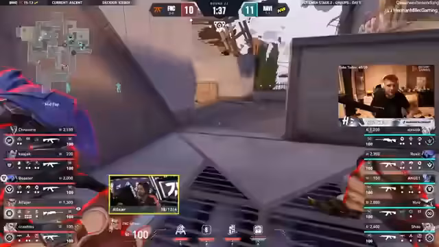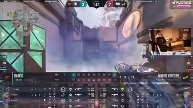 10:01:04In diesem Abschnitt des Live-Streams wird das hochintensive Spielgeschehen zwischen den Teams Navi und Fnatic auf der Map Ascent detailliert analysiert. Navi beginnt, sich auf der Karte durchzusetzen und den Rundenvorteil auszubauen. Fnatic sucht nach Informationen und reagiert langsam. Die Kommentatoren diskutieren die taktischen Manöver, wie die Platzierung von Steinen und die Bewegung der Spieler, und bewerten die Chancen beider Teams für die verbleibende Zeit. Es ist ein hin- und hergerissener Kampf um die Kontrolle über das Spielfeld.
