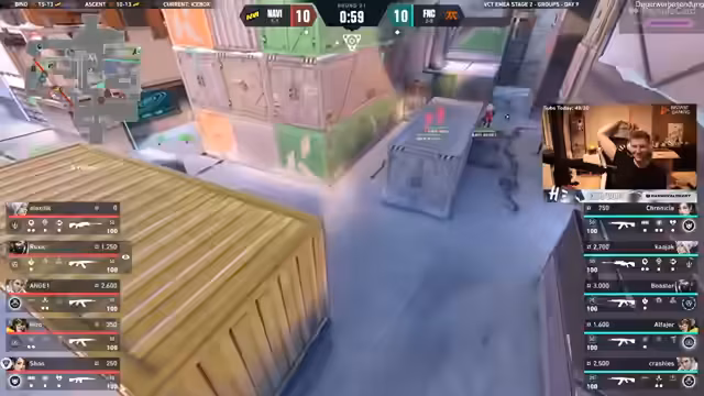 10:30:19Der Wechsel zur Map Icebox bringt neuen Schwung ins Spiel. Fnatic holt auf und verkürzt den Rückstand. Es gibt dramatische Spielzüge, bei denen Spieler von beiden Teams entscheidende Kills landen und sich Fehler einhandeln. Kommentatoren sprechen von einer gefährlichen Situation und davon, wie wichtig es ist, in solchen Momenten die Nerven zu behalten. Das Spiel wird immer knapper und bleibt bis zum Ende voller Spannung und unvorhersehbarer Aktionen.