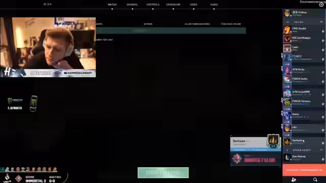 00:36:37Nach dem ersten Spiel folgt ein Pausengespräch, das thematisch nicht mehr direkt vom Spielgeschehen bestimmt wird. Die verbleibende Zeit der aktuellen Season bis zum 7. oder 8. März wird angesprochen. Der Streamer erwähnt seine Erfahrungen mit der Anti-Outlaw-Konfiguration und äußert Unmut über die Performance einiger Mitspieler, die den Ausgang der Runden negativ beeinflusst haben. Ein weiteres Spiel auf Ascent wird angedeutet.