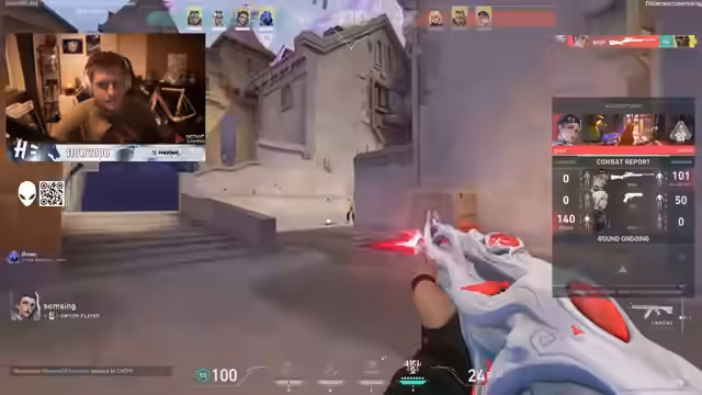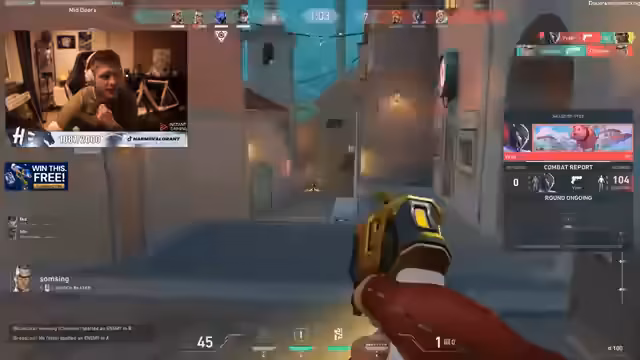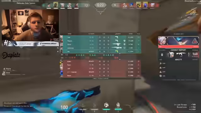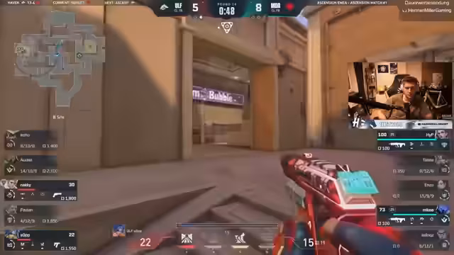 05:10:04Das Spiel verlägt sich in eine kritische Phase. Der Streamer denkt, dass die Gegner auf A und B angreifen sollten, wird aber durch ein unerwartetes 2-1 von hinten überrascht und verliert die Runde. Er und sein Teammate haben beide einen T-Pfeffer, was den Spielverlauf beeinflussen soll. Eine geplante Attacke scheitert, weil er den Sprung ins Spiel nicht schafft und stattdessen die Aktion beobachten muss.