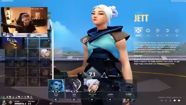 00:06:48Der Streamer diskutiert die Vor- und Nachteile von Team Deathmatch im Vergleich zu normalem Deathmatch für das Warm-up. Er kritisiert, dass TDM auf falschen Maps spielt und das Spawn-Camping die Trainingsqualität mindert. Später erwähnt er seinen Rang 'Main zu Jet & Race', was ihm im Ranked-Spiel schwerfällt, und startet ein Spiel mit dem Ziel, den Rank zu verbessern.