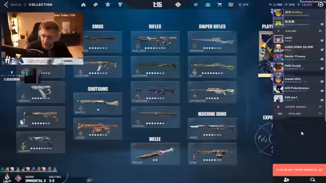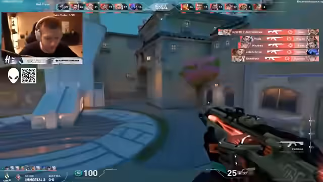 00:00:18Der Stream beginnt mit einem Deathmatch-Warm-up zur Vorbereitung auf dieRanked-Spiele. Der Streamer begrüßt Zuschauer wie 'OG' und 'Darren' und plant, die Morgen-Queue unsicher zu machen. Es finden erste Auseinandersetzungen in den Runden statt, wobei der Streamer bereits einen Fehler bei der Platzierung eines Kontraktors zugibt.