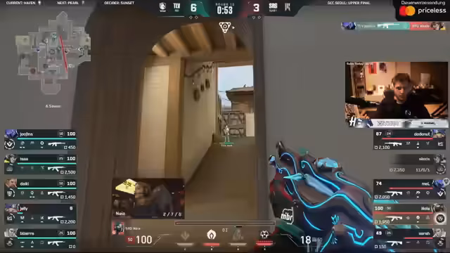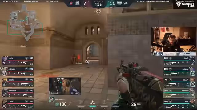 05:08:36Die Spannung steigt in diesem Eliminierungsspiel, da das Lower Bracket Final in greifbarer Nähe ist. Ein 4-1 Rückstand erfordert eine starke Reaktion von Crew. Eine übermotivierte Aktion von Bullet Swing führt zu einem Fehler, und ein 4 gegen 2 wird verschenkt, was als 'krank' bezeichnet wird. In der ersten Map mit einem schnellen Push in die Verteidigung war der Plan von MIPR immer, den Punkt aufzugeben und den Retake zu spielen. Obwohl Monsch einen Kill auf Basarda erzielen kann, schwächt dies die B-Verteidigung erheblich. MIPR und SRN zeigen heroische Leistungen, wobei die Sheriff von SRN keine einzige Schadenspunkt erleidet. Die Kommentatoren analysieren die kritischen Momente und die psychologischen Auswirkungen auf die Teams.