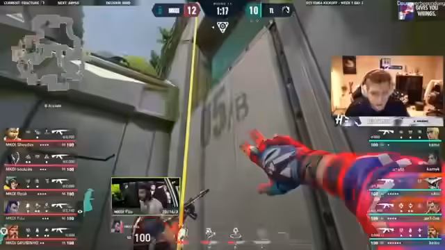 02:42:04Die Spielrunde ist in vollem Gange, wobei Gekko endlich einen Pick in der Mitte erzielt hat und nun die Kontrolle übernimmt. Es wird über die Strategie diskutiert, ob ein Spieler den Bomber nehmen soll. Die Kommunikation innerhalb des Teams ist entscheidend, um die Seite einzunehmen und Angriffe zu koordinieren. Es wird überlegt, ob Fenix durch die Mitte gehen soll, was jedoch nicht geplant ist. Die Spieler tauschen Informationen über Positionen und Bedürfnisse aus, wie z.B. die Anforderung nach einem Phantom. Es gibt auch Momente der Verwirrung und des Misstrauens, als ein Spieler ein 'Spider-Sense' erlebt und sich fragt, ob ein Cheat im Spiel ist. Die Teammitglieder bieten sich gegenseitig Unterstützung an, indem sie Blitze anbieten und Mollys koordinieren, um bestimmte Bereiche abzudecken. Die Kommunikation ist jedoch nicht immer reibungslos, da einige Spieler, wie Rax und Randy, scheinbar nicht immer zuhören, was die Koordination erschwert. Trotzdem versuchen sie, zusammenzuarbeiten und Strategien anzupassen, um die Runde zu gewinnen. Es wird auch über die Bedeutung von Teamplay und Zuhören gesprochen, um erfolgreich zu sein. Die Spieler analysieren die Positionen der Gegner und passen ihre Strategie entsprechend an, wobei sie sich gegenseitig unterstützen und Informationen austauschen, um die bestmögliche Entscheidung zu treffen.