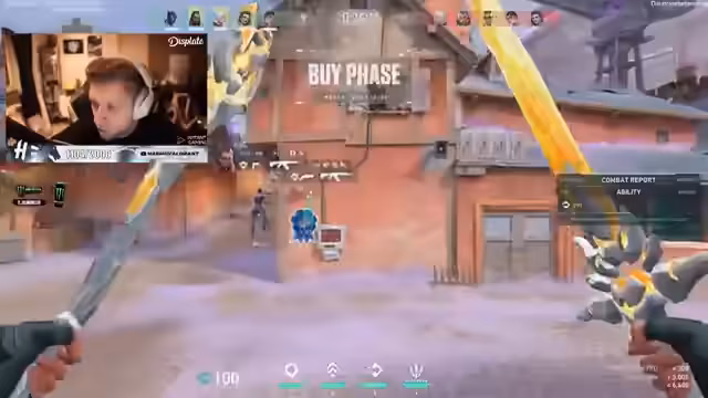 04:08:46Der Streamer analysiert das gemeinsame Nerf, das beide Teams erlebt haben. Er bewundert die Leistung seines Phoenix-Spielers, das gesamte Game tollt. Er geht auf konkrete taktische Entscheidungen ein: mit Jett und Phoenix will er Pressure auf B ausüben, da eine schnelle Rotation des Gegnerteams erwartet wird. Er kommuniziert mit einem Spion im gegnerischen Team und plant, mit der Gruppe umzugreifen. Er identifiziert einen gegnerischen Vito und dessen niedrigen Gesundheitszustand als wichtigen Faktor für den nächsten Zug.